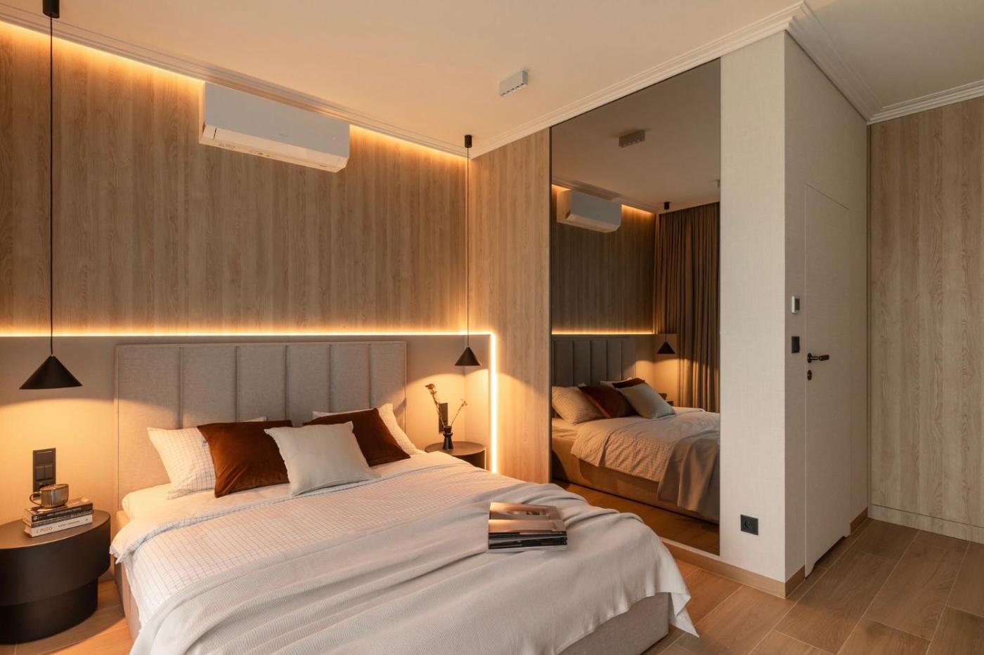 Oferta apartamentu obejmuje sypialnię (1), telewizor z płaskim ekranem oraz klimatyzację.