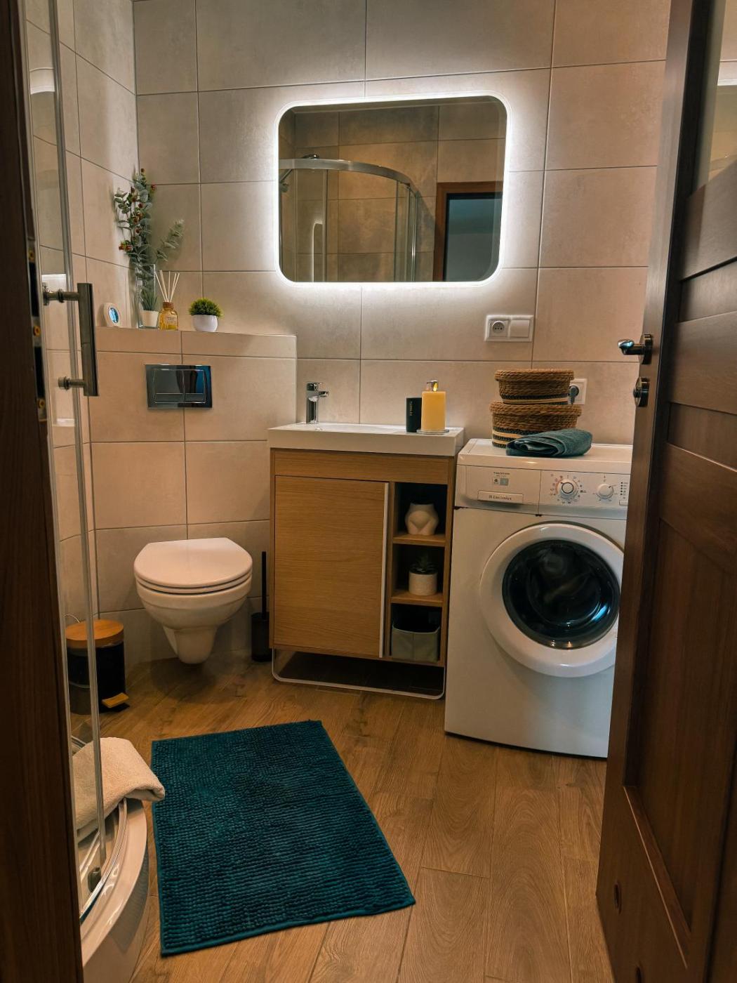 Domek. This chalets standout feature is the fireplace. Featuring a private entrance, this spacious chalet also is comprised of 1 living room, 5 separate bedrooms and 2 bathrooms with a shower. Guests will find a stovetop, a refrigerator, a dishwasher and an oven in the kitchen. The chalet also has a barbecue. The chalet offers a washing machine, a tea and coffee maker, heating, a flat-screen TV, as well as lake views. The unit offers 6 beds. Domek - 15 osobowy. Powierzchnia pokoju ok.: 100 mkw.